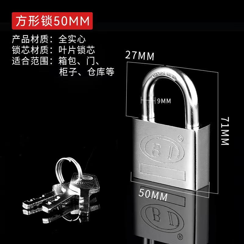 Short Beam Square Blade Padlock Stainless Steel Padlock Full Solid Padlock Door Lock Lock